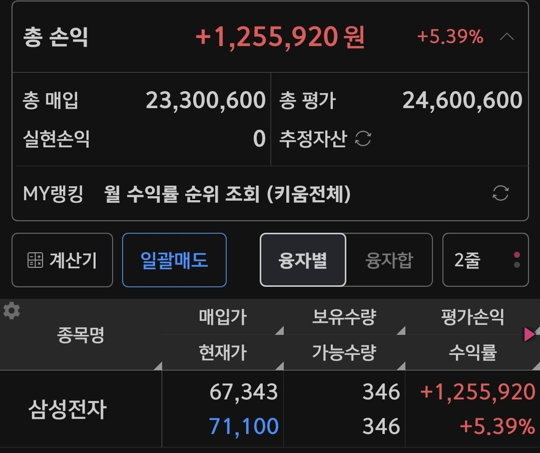 주식 총 잔액 : 289,736,028원(전달대비▲8,076,335원)