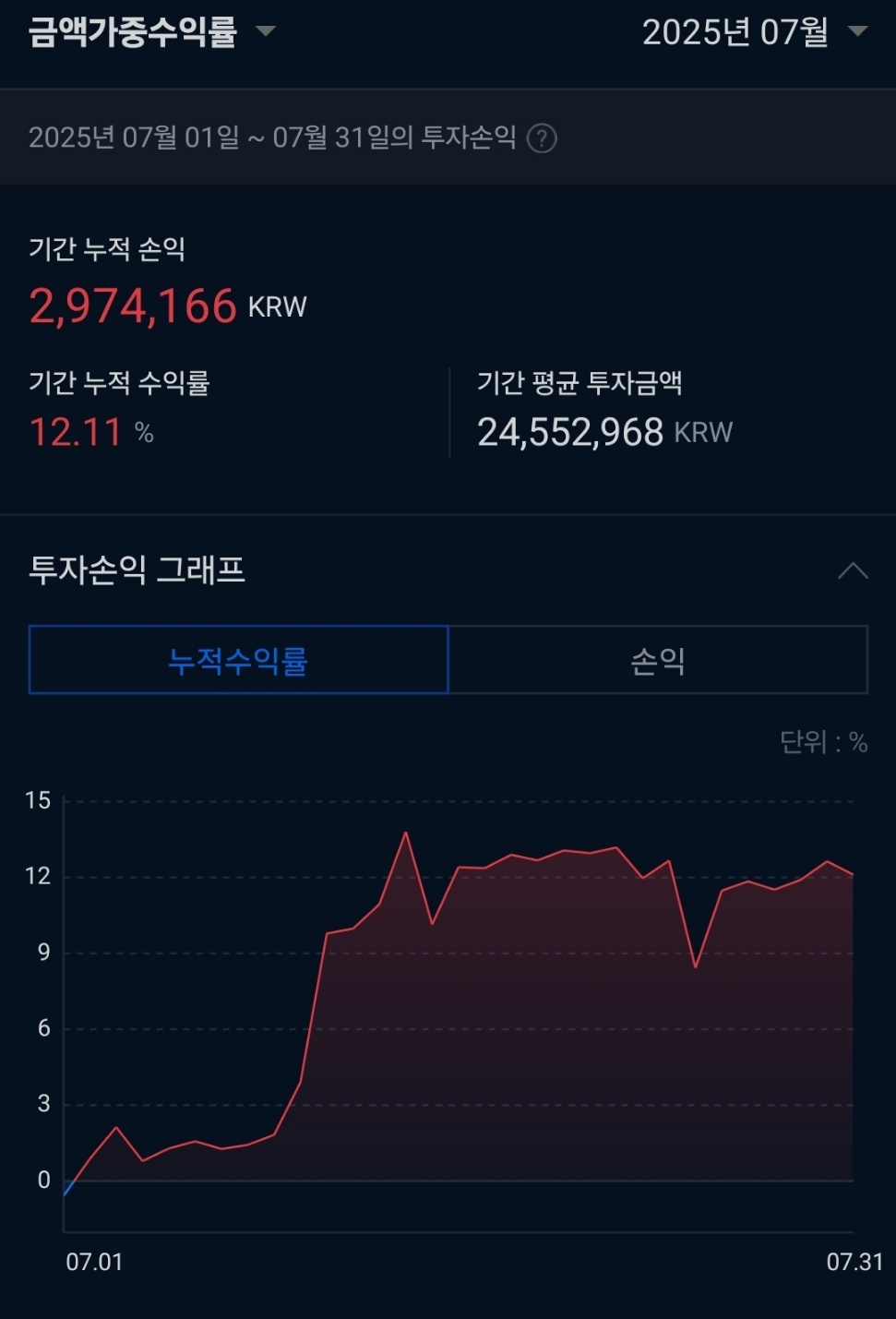 - 7월 코인투자 손익: + 2,974,166원